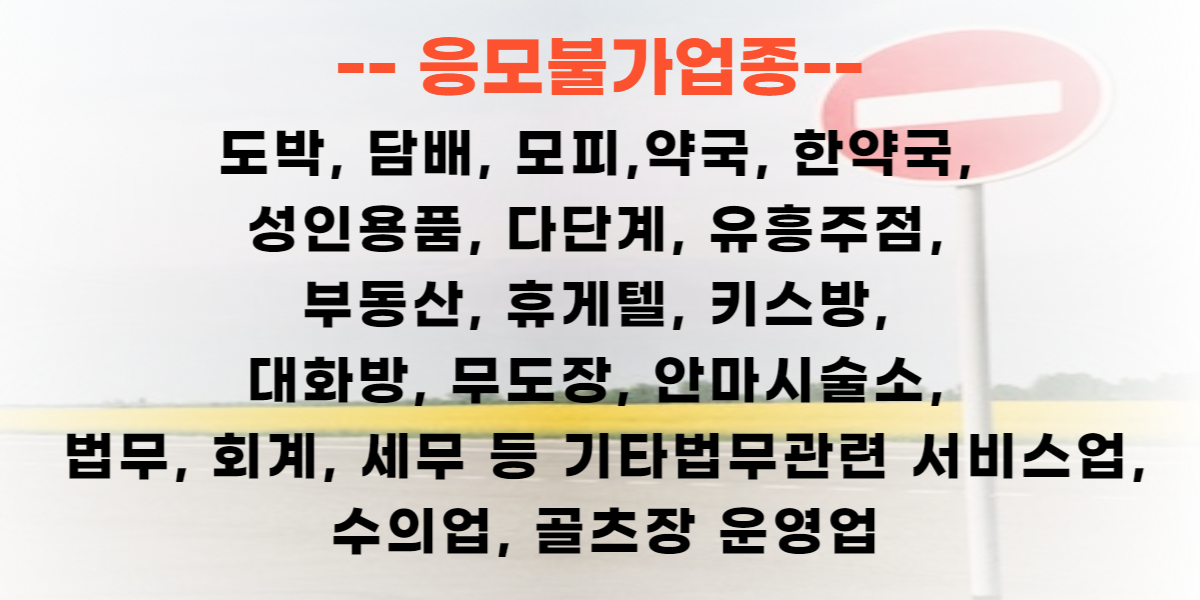 위와 같은 소상공인 정책자금 융자제외 대상 업종은 응모를 하실 수 없습니다.