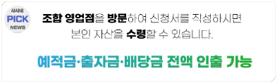 이러한 예,적금 외에도 조합원이 되고자 가입할 때 납부했던 출자금의 경우 탈퇴후에 찾아가지 않는다거나, 조합정기총회에서 배당하기로한 금액 중 찾아가지 않은 미완급 배당금도 찾아가지 않는 분들이 많다고 합니다.