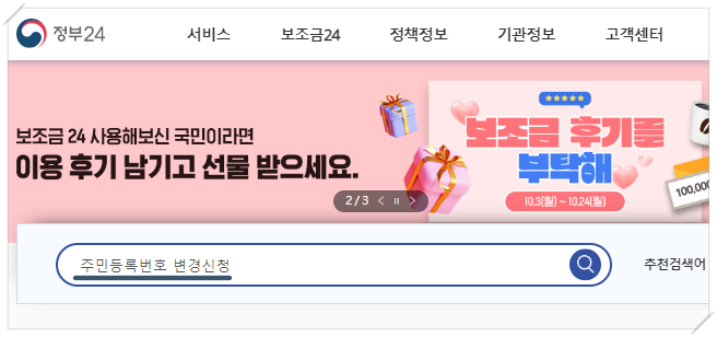 정부24 홈페이지에서 주민등록번호 변경신청을 검색해서 신청을 하면 됩니다.