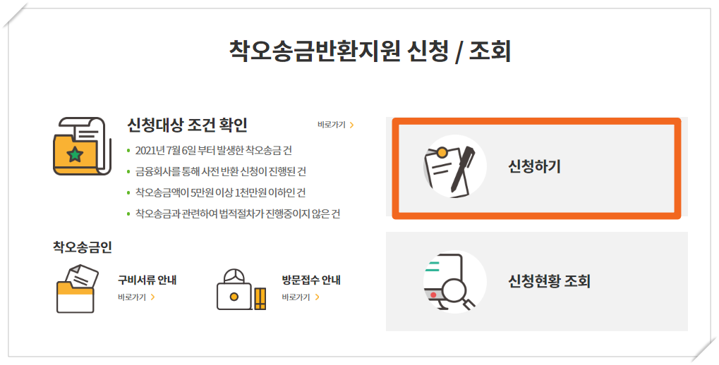 착오송금 반환 지원 서비스 신청 방법