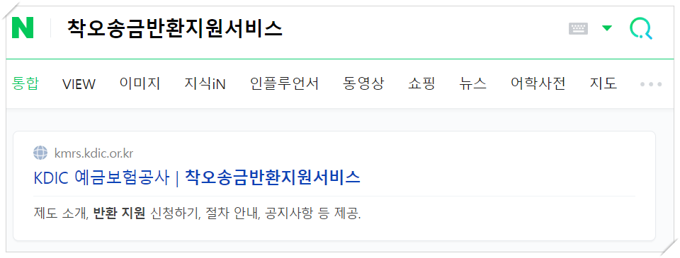먼저, 검색창에 착오송금지원서비스를 검색하면 해당 사이트가 뜹니다