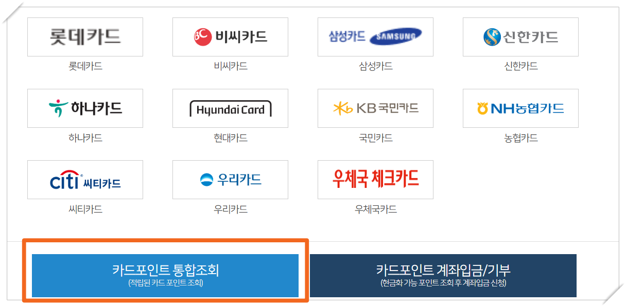 7. 카드포인트 통합 조회 하실 수 있는 카드들이 확인됩니다.