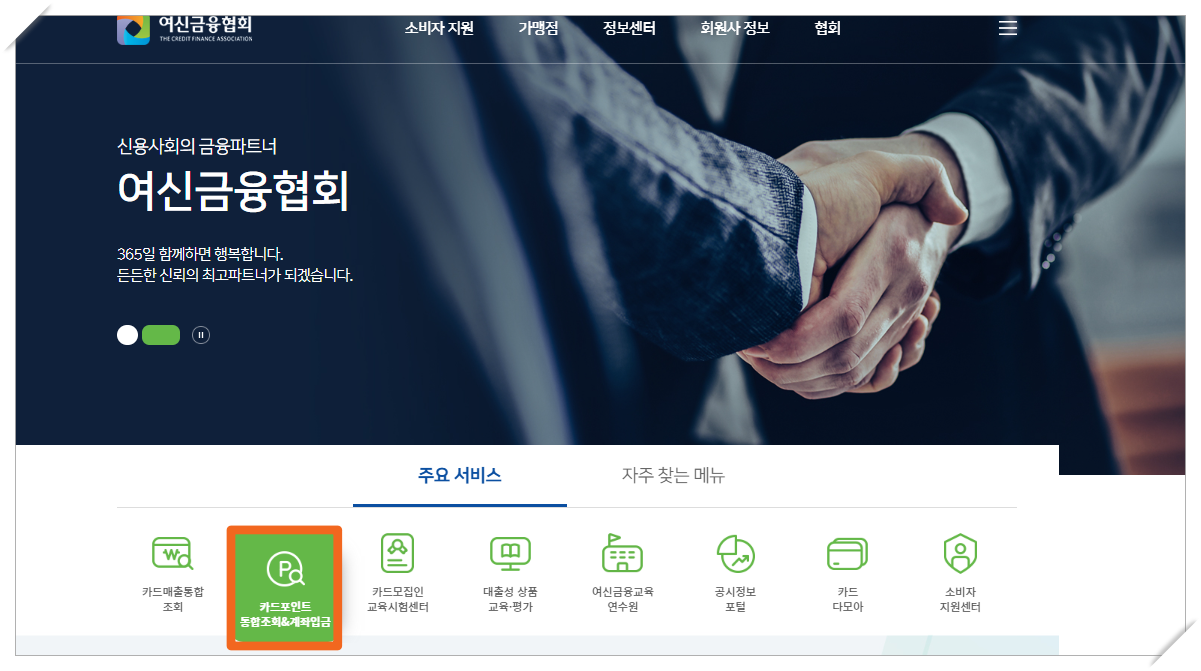 2. 들어가서 [카드포인트 통합조회 및 계좌입금]을 누릅니다.