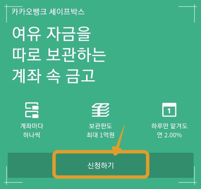 가입조건은 카카오뱅크 입출금 통장을 보유한 실명의 개인이라면 세이프 박스를 개설할 수 있습니다.