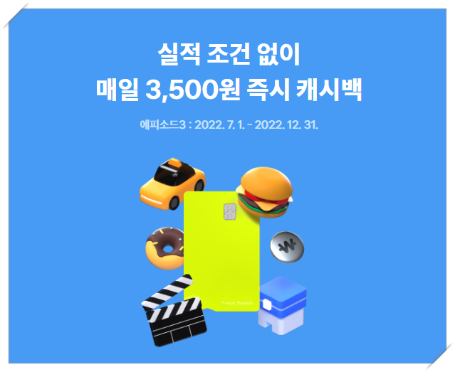 토스뱅크 체크카드는 일반 은행의 체크카드와는 다르게 에피소드 형식으로 진행이 되어 에피소드에 따라 혜태기 조금씩 변화되는 것이 특징입니다.