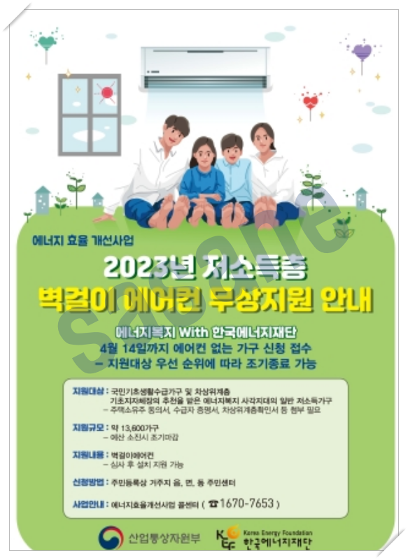 벽걸이 에어컨 무상 지원 사업은 현재 신청이 시작되었고 4월 14일(금)까지 신청을 받습니다.