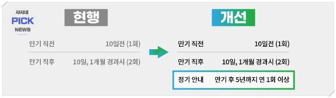 기존 만기 직전과 직후에만 실시하던 고객 안내를 만기 후 5년까지 연 1회이상 정기통보를 하도록 시스템이 개선되었습니다.   장기 미인출 예금 해지시에는 전결기준을 상향하여 본인확인 등의 내부통제를 강화하하였습니다