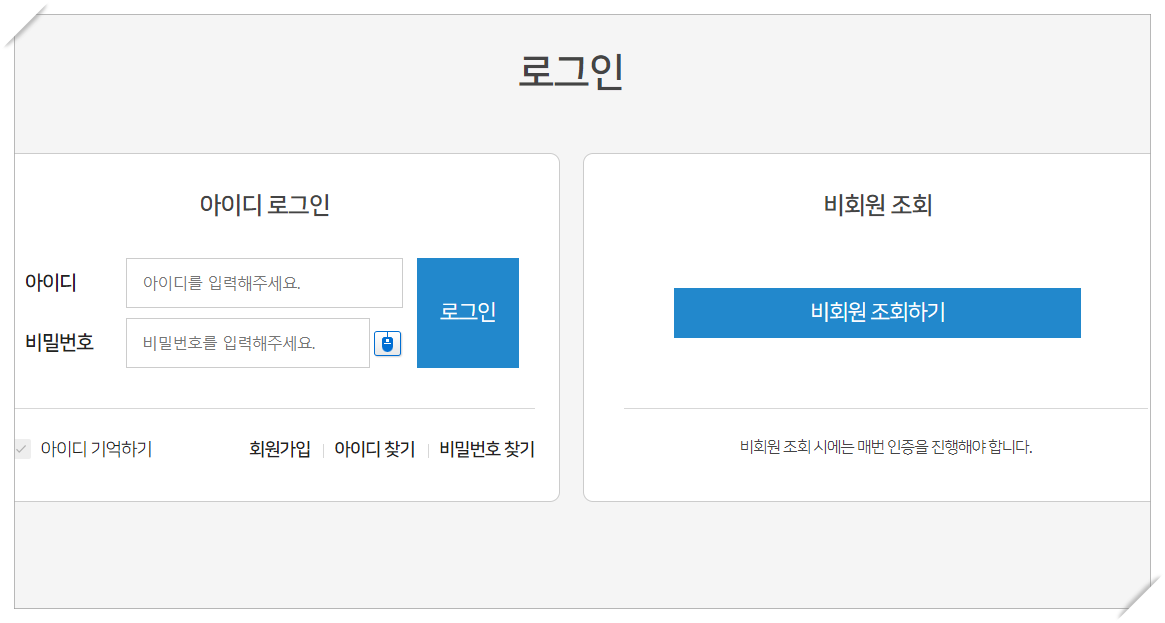 4. 이후에는 로그인 창이 뜹니다. 하지만 회원가입을 하지 않고 비회원으로도 조회를 하실 수 있습니다.