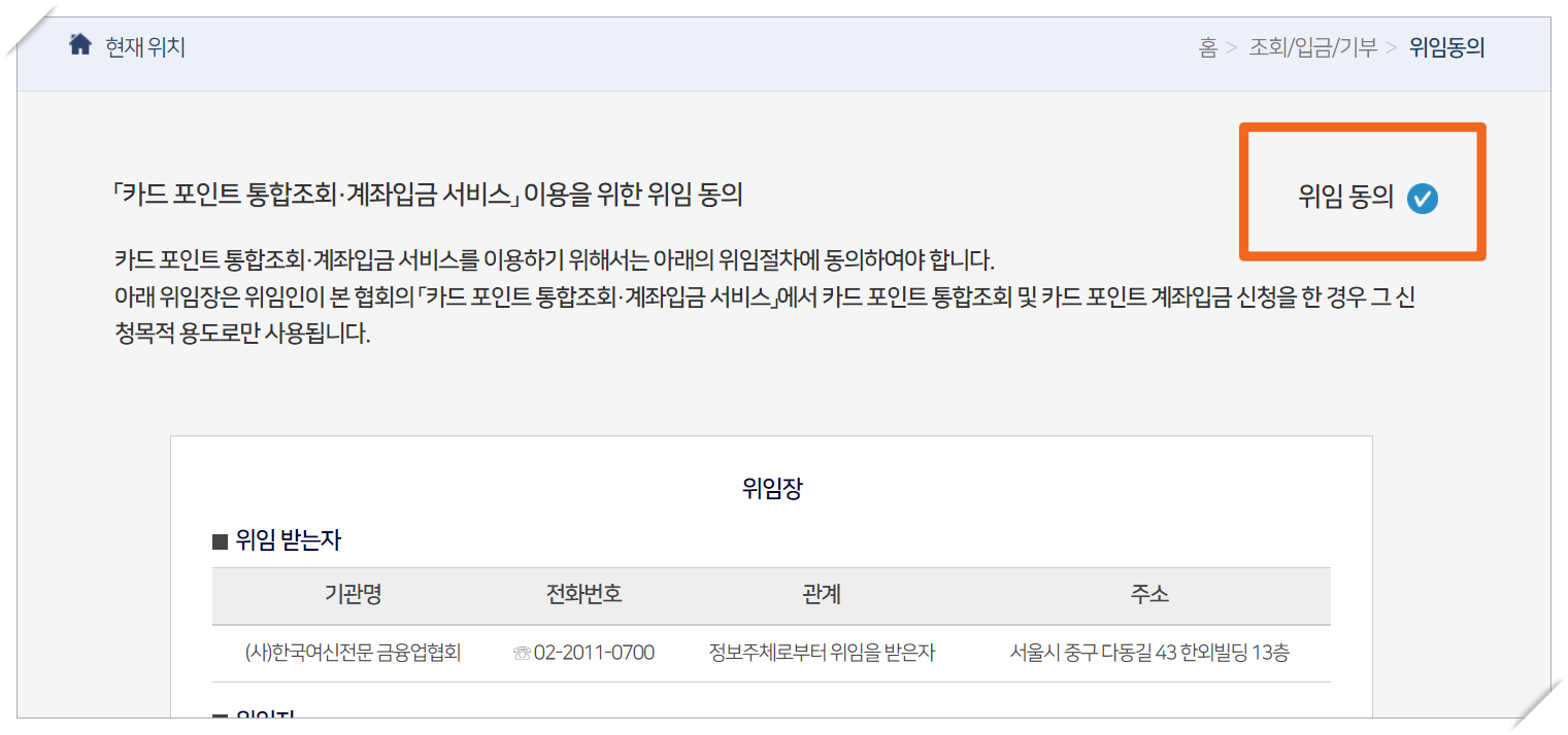 6. 본인확인서비스에서 본인 인증을 하시고 [위임동의]를 하시고 하단의 [다음]을 누릅니다.